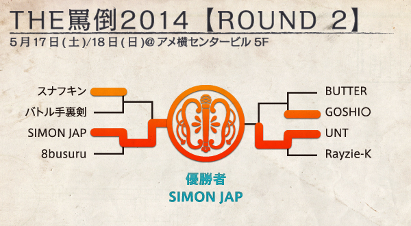 見事な五月晴れの中,THE罵倒2014 【ROUND 2】が開催!!【CASTLE RECORDS】5周年イベントとして行われた今大会はアメ横センタービルに戦いの舞台を移し開幕した。この日も多くのMCが【罵倒】本拠地 に集結。試合開幕前から独自の緊迫感が流れる。